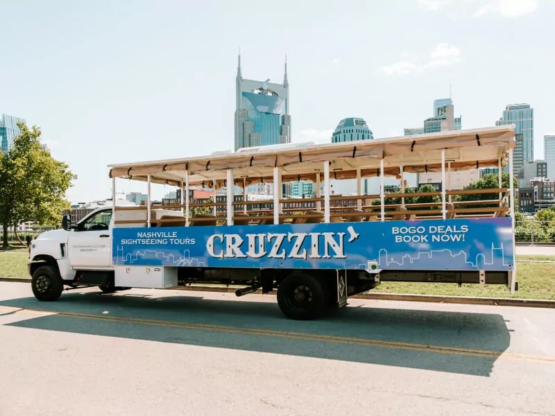 Cruzzin Nashville operates a fleet of open-air vehicles. Cruzzin is Nashville’s #1 sightseeing and tour provider whether you are looking for private Nashville tours with your friends and family or a corporate event. We are Cruzzin’ to and from exciting high-traffic areas, entertainment districts, historic neighborhoods, sporting and event venues, festivals and tourist attractions.